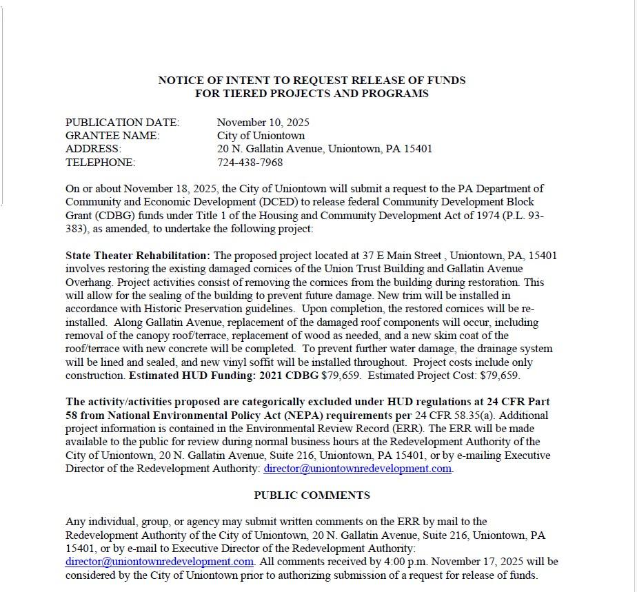The Redevelopment Authority of the City of Uniontown hires a new director.